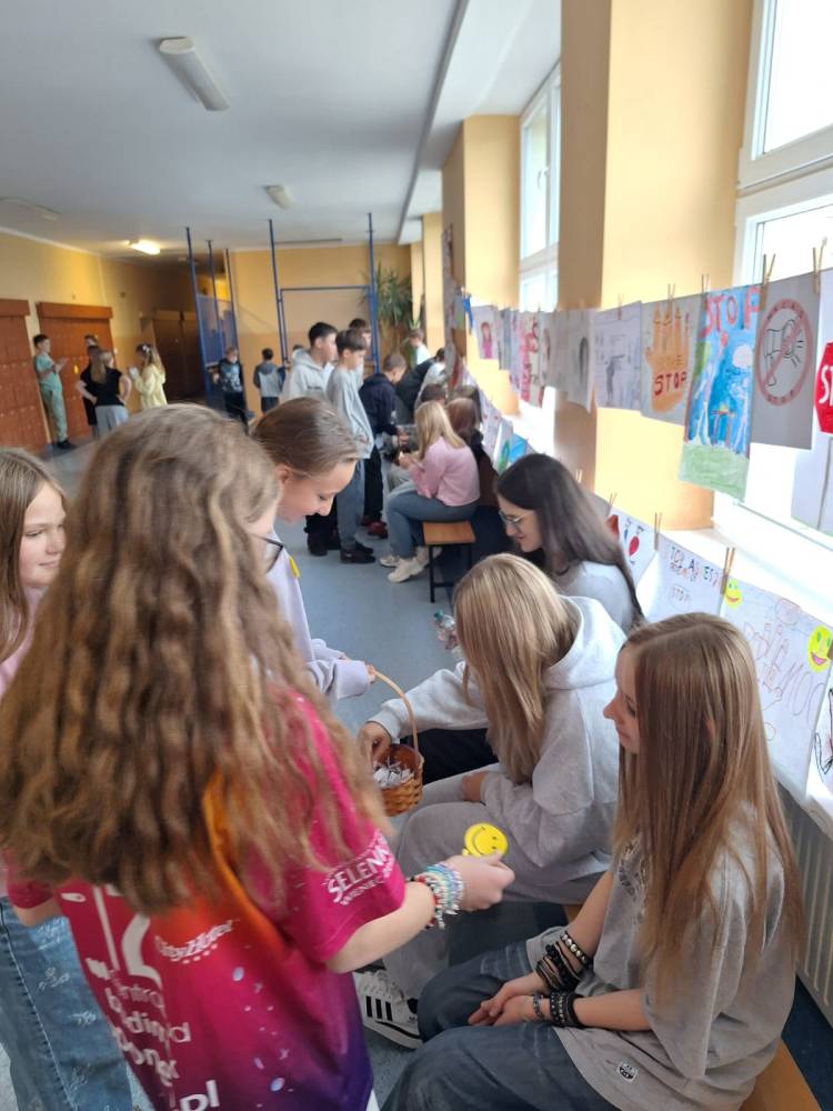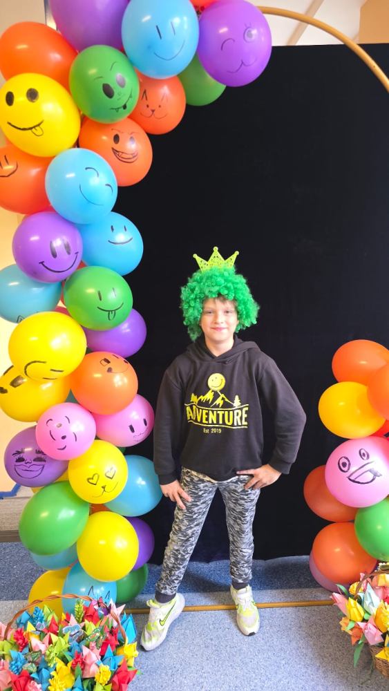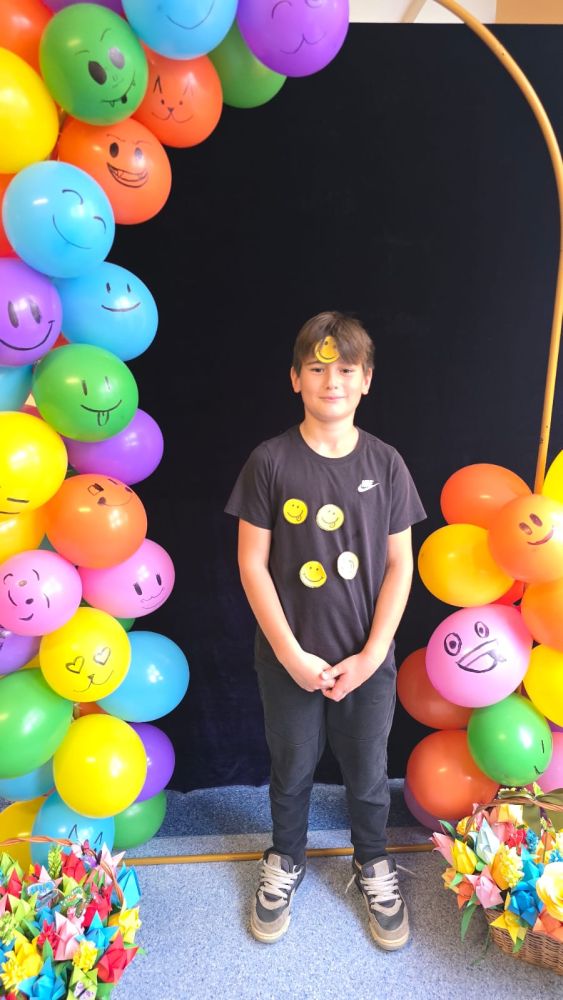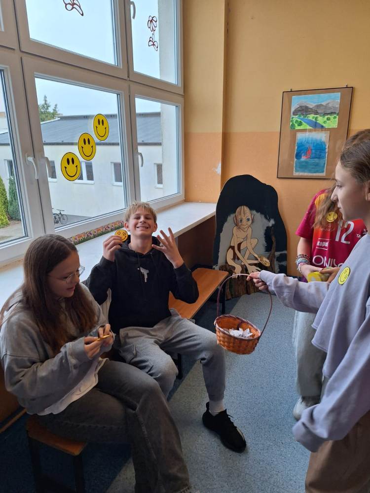 W naszej szkole, to poniedziałek 6 października był okazją do świętowania tego dnia i upłynął w wyjątkowo radosnej atmosferze. Szkolne Koło Wolontariatu zaprosiło całą społeczność szkolną do wspólnej zabawy i dzielenia się pozytywną energią. Drzwi naszych sal lekcyjnych zostały pięknie udekorowane symbolami uśmiechu; połączyły edukację z dobrą zabawą, a uśmiech stał się symbolem jedności i przyjaznej atmosfery w naszej szkole. Dzieci rozdawały rówieśnikom uśmiechnięte buźki oraz kartki z miłym słowem, zachęcając do życzliwości, serdeczności i dzielenia się pozytywną energią. Wszyscy mieli również możliwość wykonania zabawnego zdjęcia z użyciem foto- okienek. Czuć było w szkole atmosferę radości, mimo jesiennej pogody.