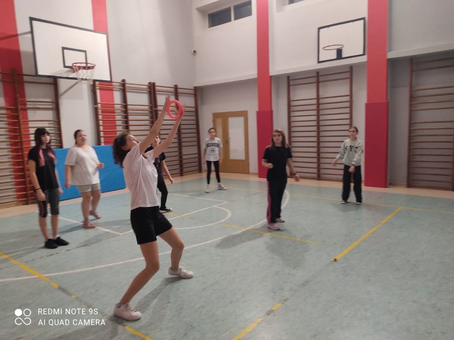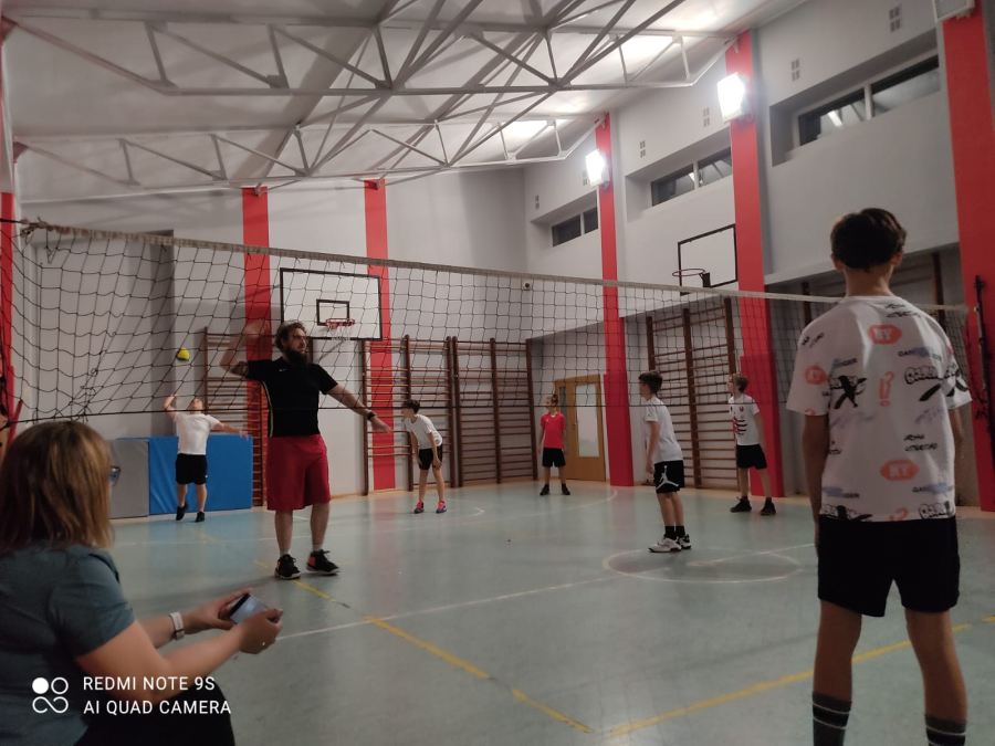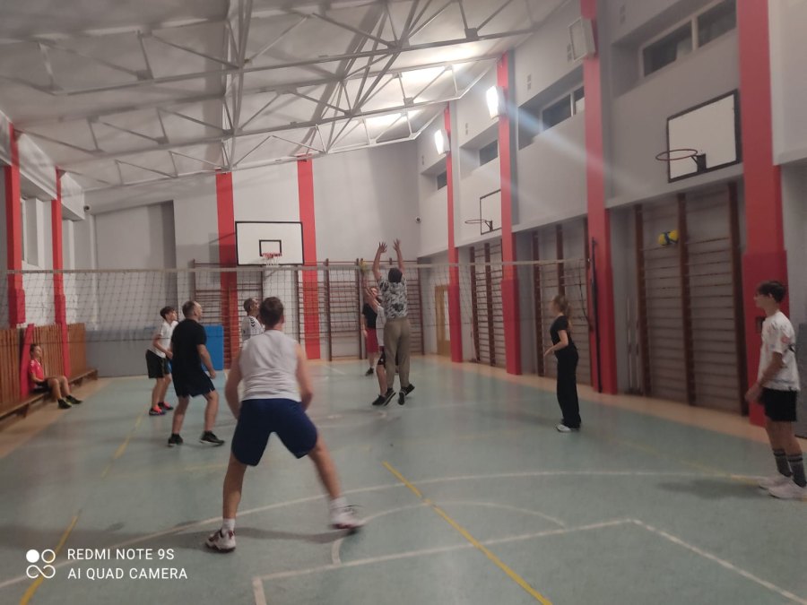 W środę, 12 listopada, społeczność klasy 6a, wzięła udział w zawodach integracyjnych na sali gimnastycznej. Dziewczęta grały przeciwko swoim mamom w ringo, a panowie z chłopcami oraz wychowawcą w siatkówkę. W tym drugim przypadku stworzyliśmy zespoły mieszane. Graliśmy na przemian po 10 minut lub do 25 zdobytych punktów. Ogółem zarówno w ringo jak i w siatkówkę rozegraliśmy po cztery serie spotkań. Prawie wszystkie były bardzo zacięte i wynik rozstrzygał się dopiero pod koniec setów. Wszyscy uczestnicy wykazali spore zaangażowanie i ambitnie walczyli na parkiecie. W przerwach był czas na przekąski oraz napoje, które uzupełniały stracone kalorie. Po około dwóch godzinach zakończyliśmy zmagania i udaliśmy się do domu na zasłużony odpoczynek.
