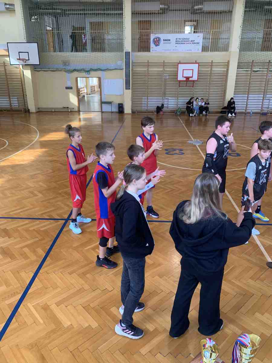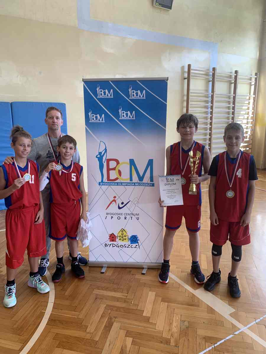 2 października, graliśmy w Igrzyskach Dzieci w koszykówce 3 na 3. Turniej odbył się w Szkole Podstawowej nr 63 w Bydgoszczy. W fazie grupowej trafiliśmy na SP 18, z którą zdecydowanie wygraliśmy 18:0, następnie naszym przeciwnikiem był bardzo wymagający zespół z SP 32, z którym jednak poradziliśmy sobie wygrywając 12:8. Tym samym wygraliśmy swoją grupę i spotkaliśmy się w półfinale z gospodarzem, czyli SP 63, która zajęła 2 miejsce w swojej grupie. Przez większość czasu mecz był bardzo wyrównany, jednak w końcówce przechyliliśmy szalę na swoją korzyść i wygraliśmy 13:9. W finale ponownie trafiliśmy na SP 32, która w drugim półfinale pokonała szkołę nr 38. Finałowy mecz nie układał się po naszej myśli. Początkowo graliśmy punkt za punkt, ale w drugiej połowie spotkania rywale odskoczyli nam na 2 punkty. Taką przewagę utrzymywali prawie do końca, jednak na 13 sekund przed końcem nasz zawodnik Joachim Rybacki, trafił zza łuku i zdobył dla nas cenne 2 punkty doprowadzając do dogrywki. W niej okazaliśmy się już lepsi i tym samym zostaliśmy najlepszą szkołą w koszykówce 3 na 3 wśród chłopców. Naszą szkołę reprezentowali Joachim Rybacki, Oliwier Prusakowski, Bogdan Fedur i Bartosz Lewandowski. Wszyscy są uczniami klasy 6a, a także zawodnikami bydgoskiej Astorii. Dzięki temu zwycięstwu awansowaliśmy do rozgrywek wojewódzkich. Półfinał i finał tych zmagań odbędzie się już w przyszłym tygodniu, także w SP 63.