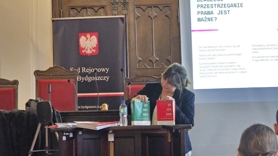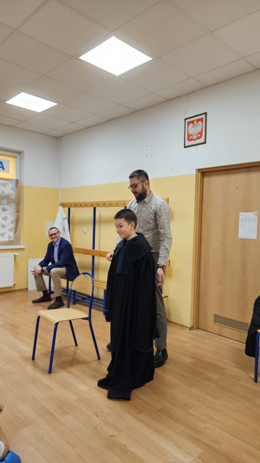 Podczas zajęć omówiono m.in. tematykę odpowiedzialności karnej nieletnich, a uczniowie mieli możliwość zadawania pytań związanych z realnymi konsekwencjami różnych zachowań. Zgłębiając wiedzę. Na zakończenie wizyty uczniowie mogli wcielić się w role prokuratora, adwokata i sędziego, przebierając się w odpowiednie togi. Była to nie tylko świetna zabawa, ale również okazja do zrozumienia, jak wygląda praca w sądzie „od środka”.