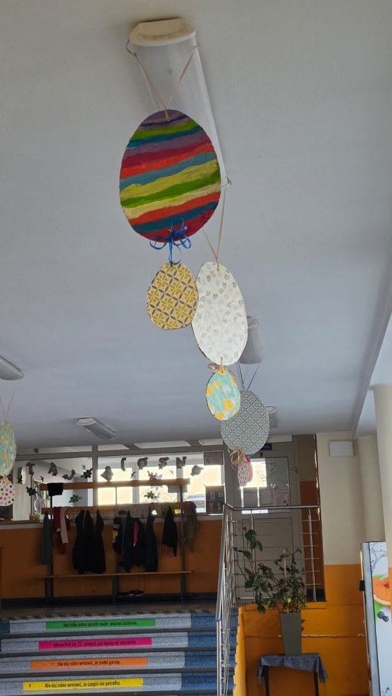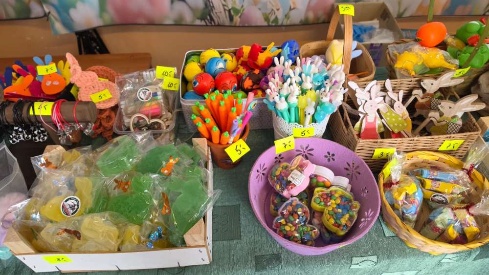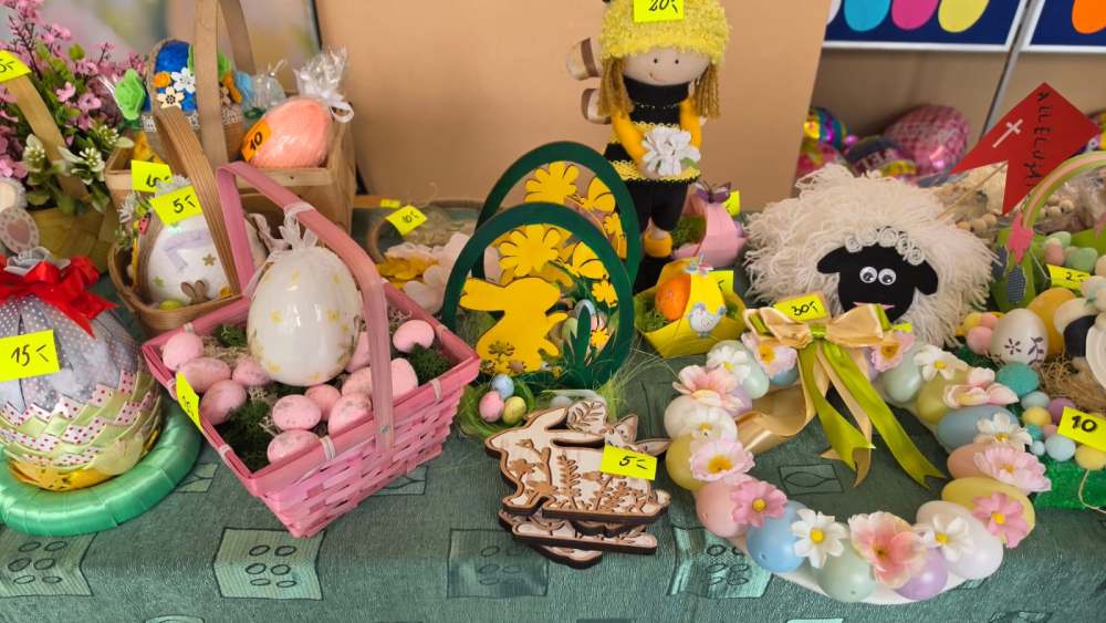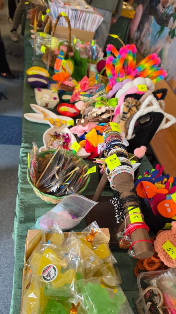 Podczas kiermaszu można było nabyć piękne dekoracje i ozdoby świąteczne wykonane własnoręcznie przez uczniów, nauczycieli oraz rodziców oraz darczyńców- przyjaciół szkoły. Kiermasz dopełniał piękny wielkanocny wystrój kolorowe zajączki i jajka wykonane przez uczniów i nauczycieli, które tworzyły wyjątkową już świąteczną atmosferę.